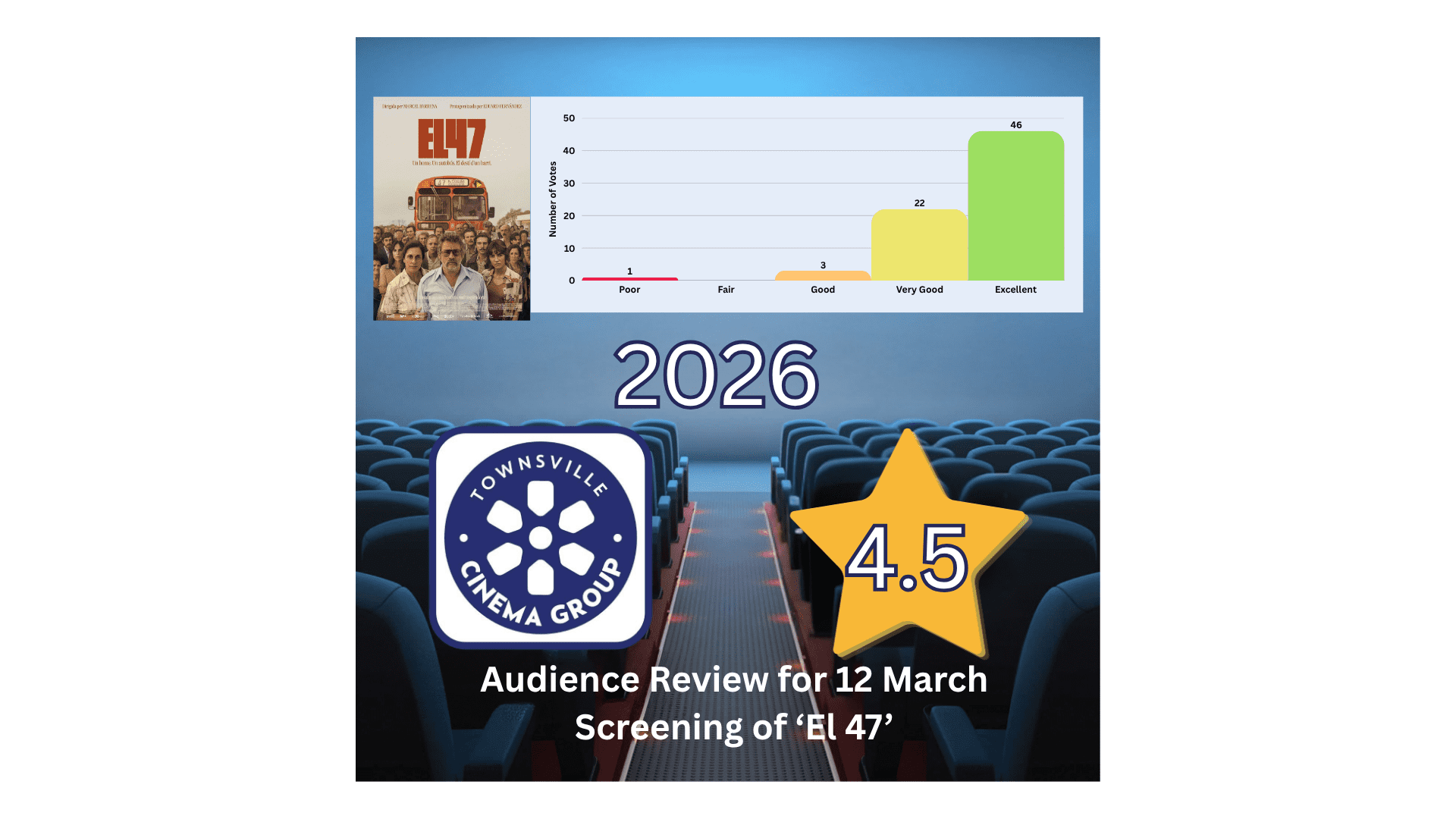Each screening, the audience gets a chance to rate the movies through voting slips, giving stars in a range from 1 – 5.